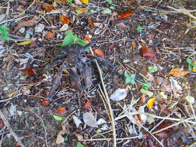 今日の一周道路。また昼間からヤシガニ登場。