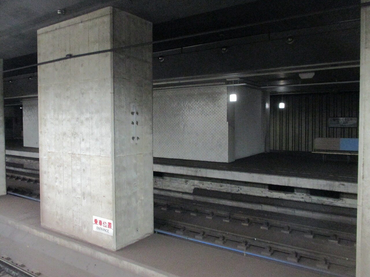 ホームは片側しか使われておらず、対面のホームは電気も消え廃墟感が漂っています。
