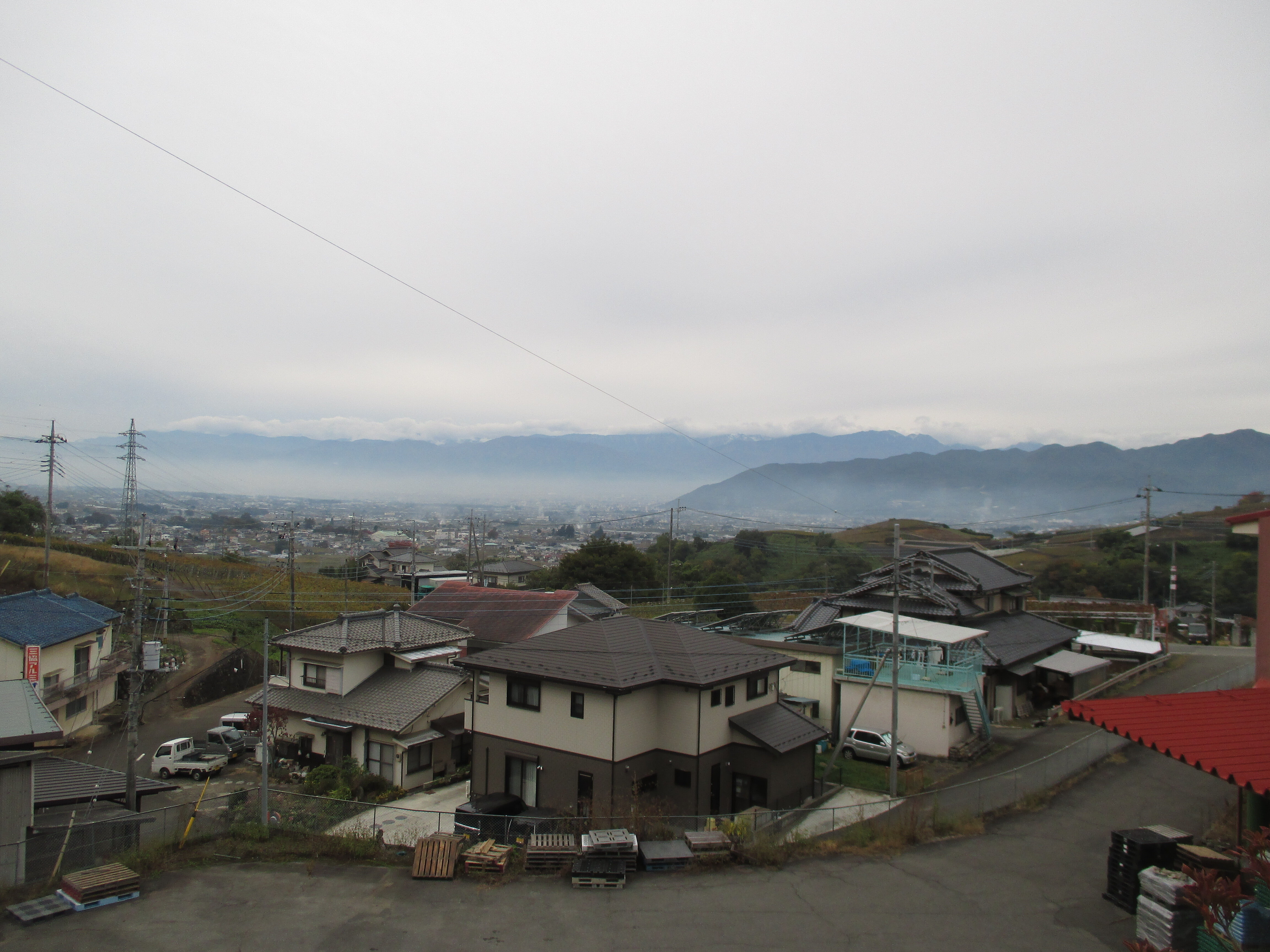ぶどうの丘から見た市街地。扇状地の地形の特徴が分かる。