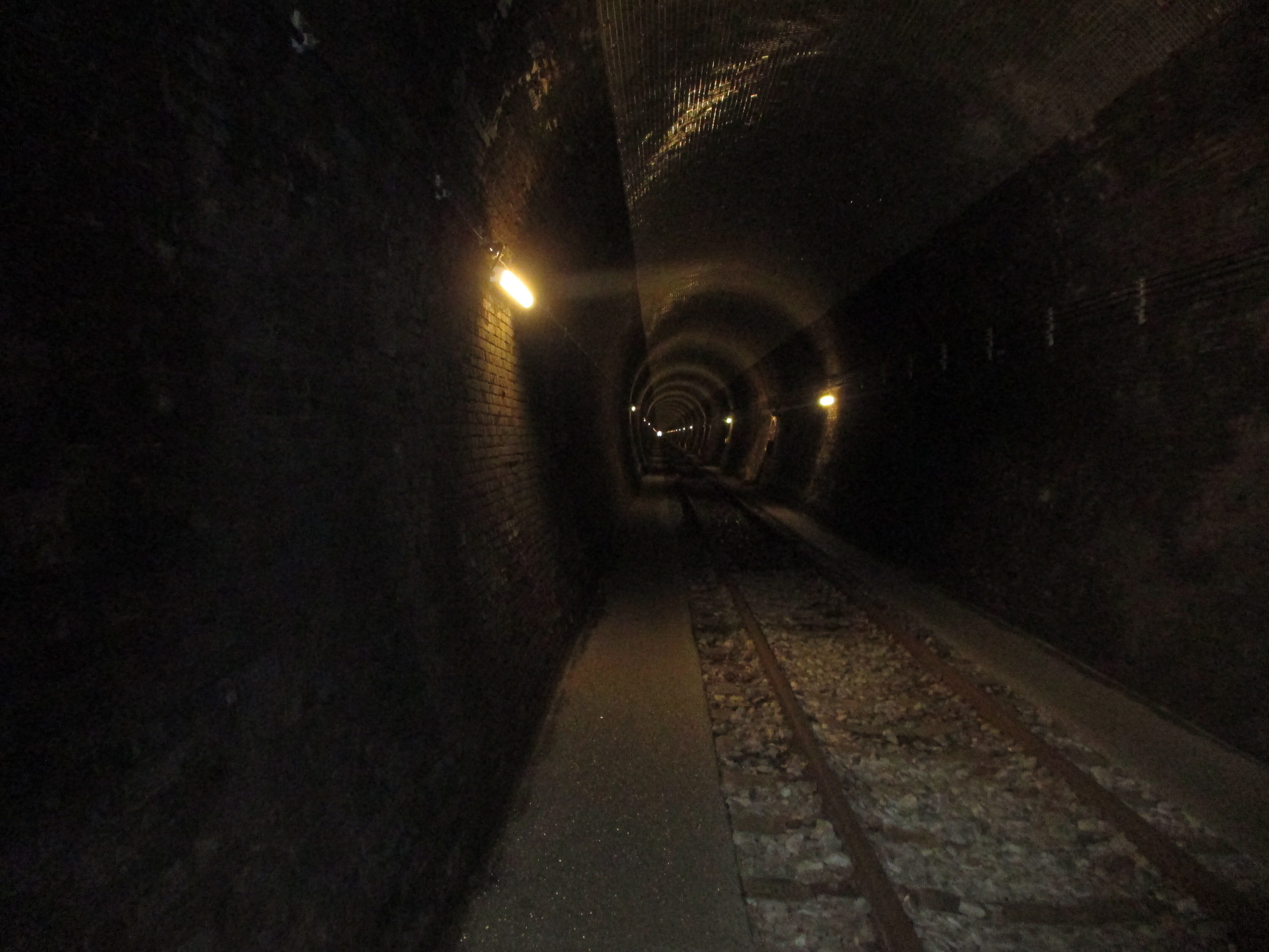 線路が敷かれたままのトンネルを1.4km、往復は2.8kmですね、この距離を歩ける場所はあまりないし、現役時代の設備がそのまま保存されているのも雰囲気を盛り上げます。