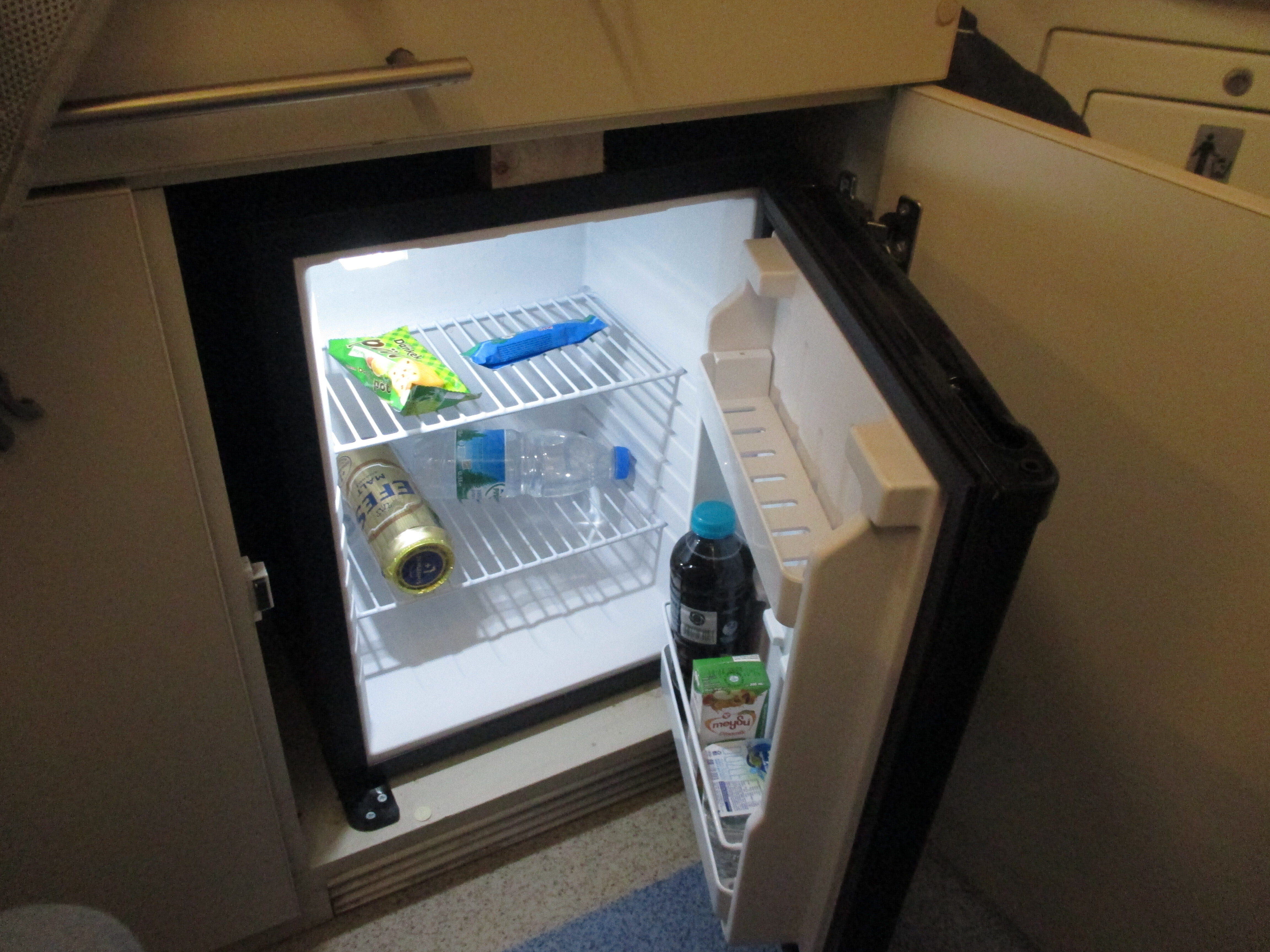 冷蔵庫があって中には水と簡単なスナックが用意されている。