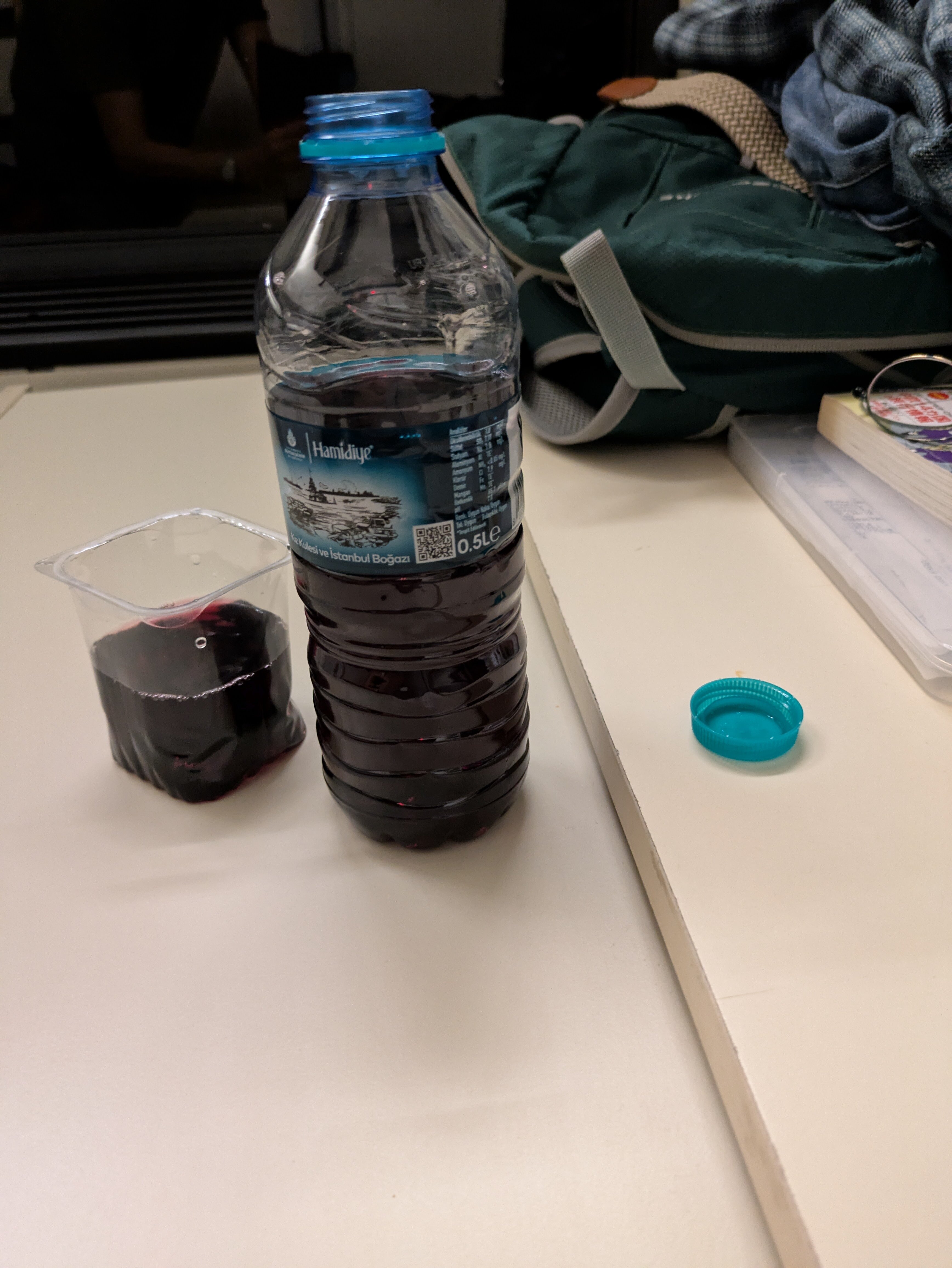 昨日の残りのワインをペットボトルワインにして、エフェスも1本持って行こう。